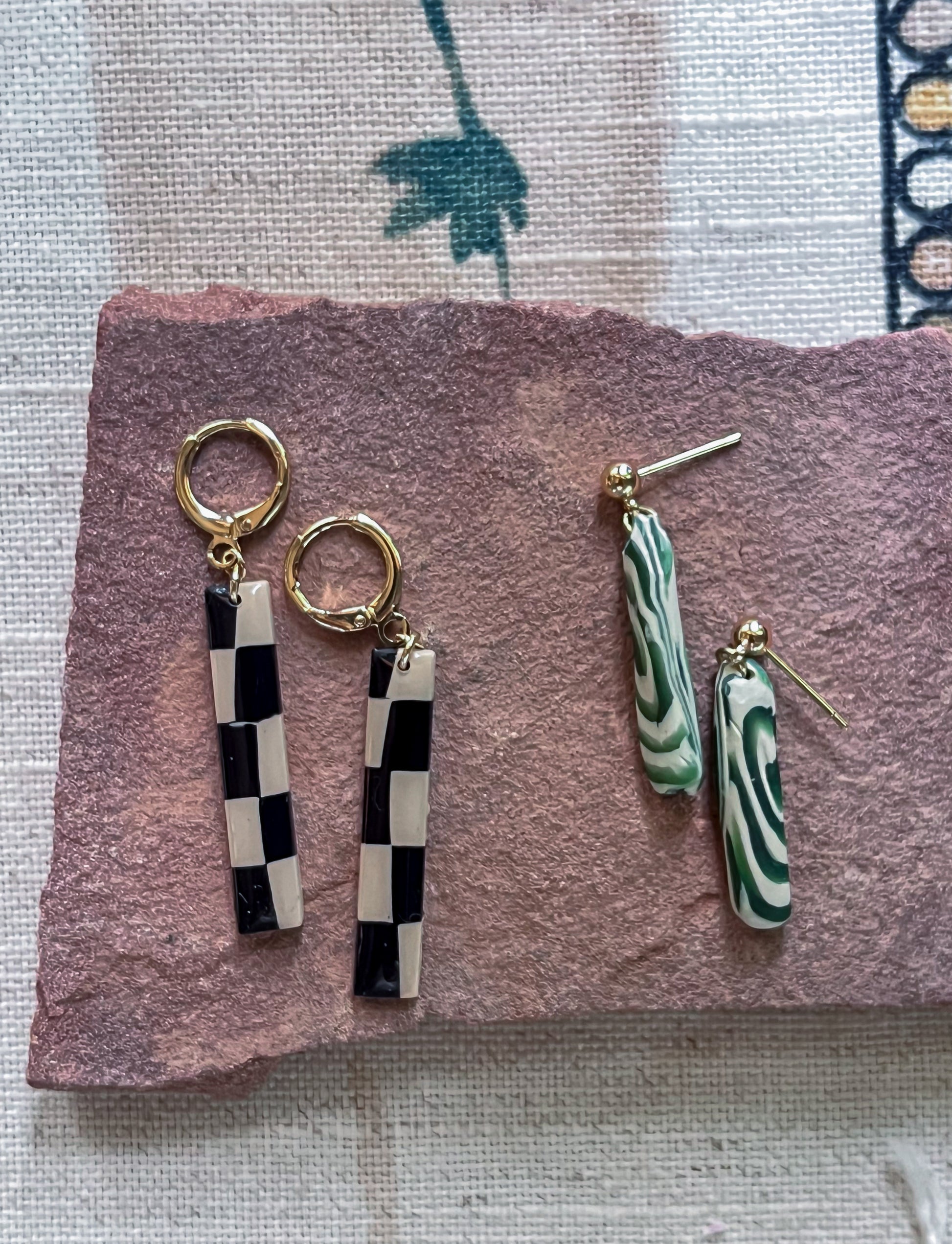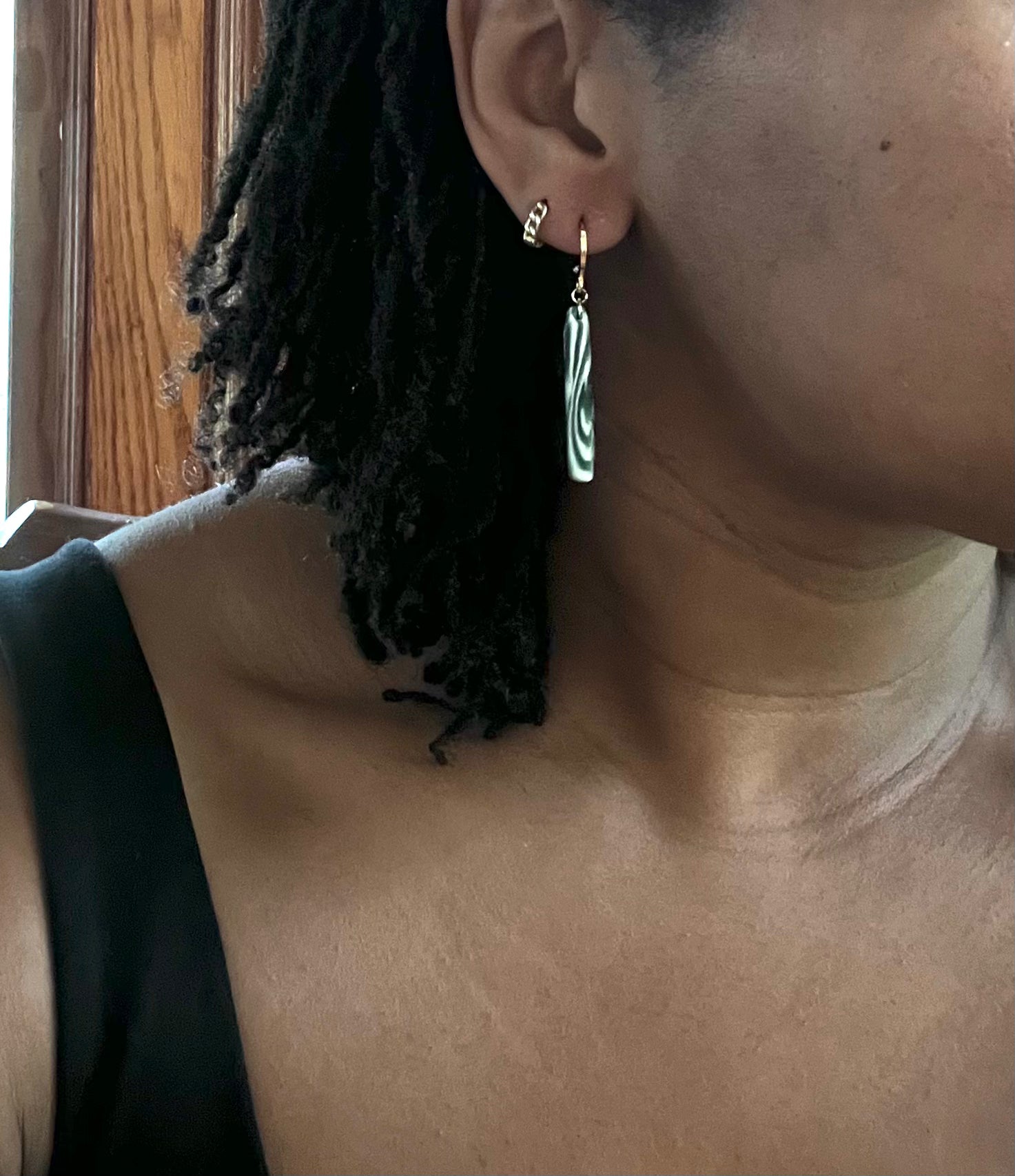 Green Marble Huggies - 14K Gold Filled Huggie